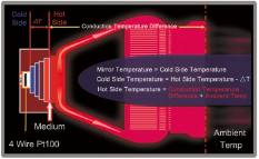 KGT-DP 采用四級增強型帕爾貼冷泵,理論溫差為107℃,制冷強勁,使高溫環境下測量更低露點成為可能。熱管散熱的熱傳導效率比普通的純銅高數十倍,甚至上百倍; 而柔性導熱材料使冷泵基體與散熱器緊密無縫連接,其導熱系數是普通導熱膏的近30倍。
