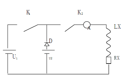工作時取U1為U2的10倍以上,U2為電橋電源,D的反向電壓應(yīng)大于U1合K1,K2待電流表指示電流達I=U2/Rx時,斷開K1,這樣便可很快地測量了。